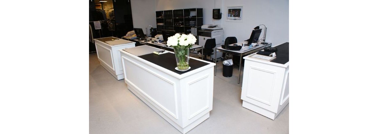 Vi hjælper også gerne med delindretninger som stativer, podier, prøverum, belysning, prisskiltning, spejle osv.